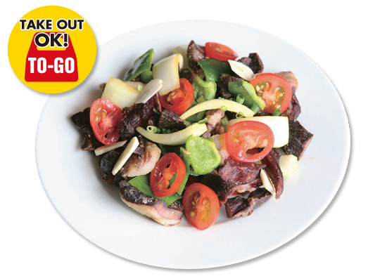Dry mutton meat saute with vegetable.